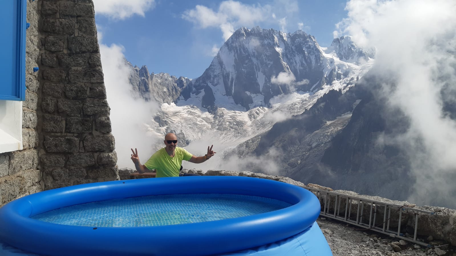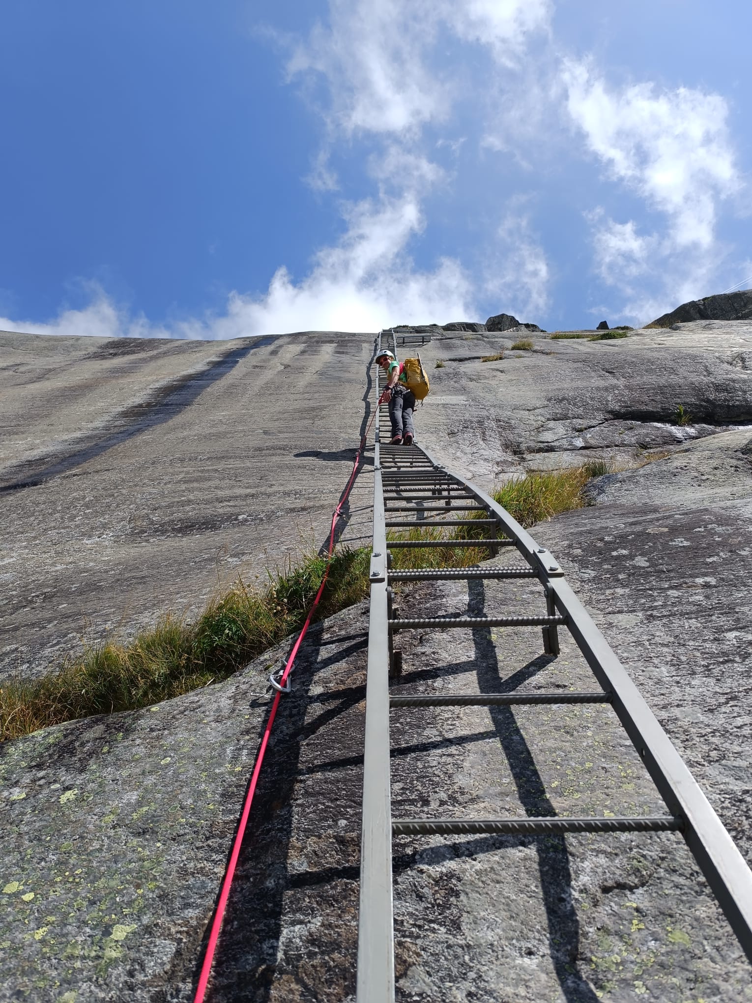 Les échelles sont impressionnantes, mais font gagner un temps précieux. Arrivée au refuge, sans toutefois la motivation pour un plongeon dans la « piscine » !