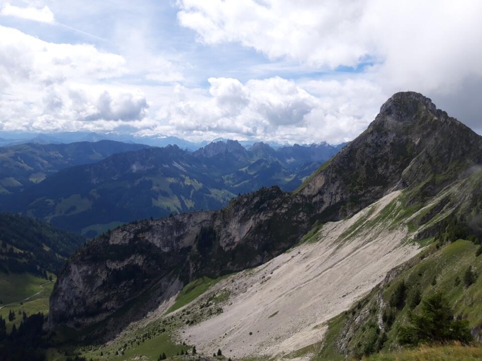 Même pendant les vacances, il y a des randonnées organisées par le club, c’est ainsi que nous sommes allés à quatre dans les Préalpes fribourgeoises gravir un sommet peu connu, le Foschenflue culminant à 1975m, au-dessus du village de Jaun.