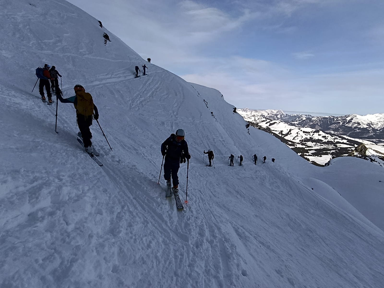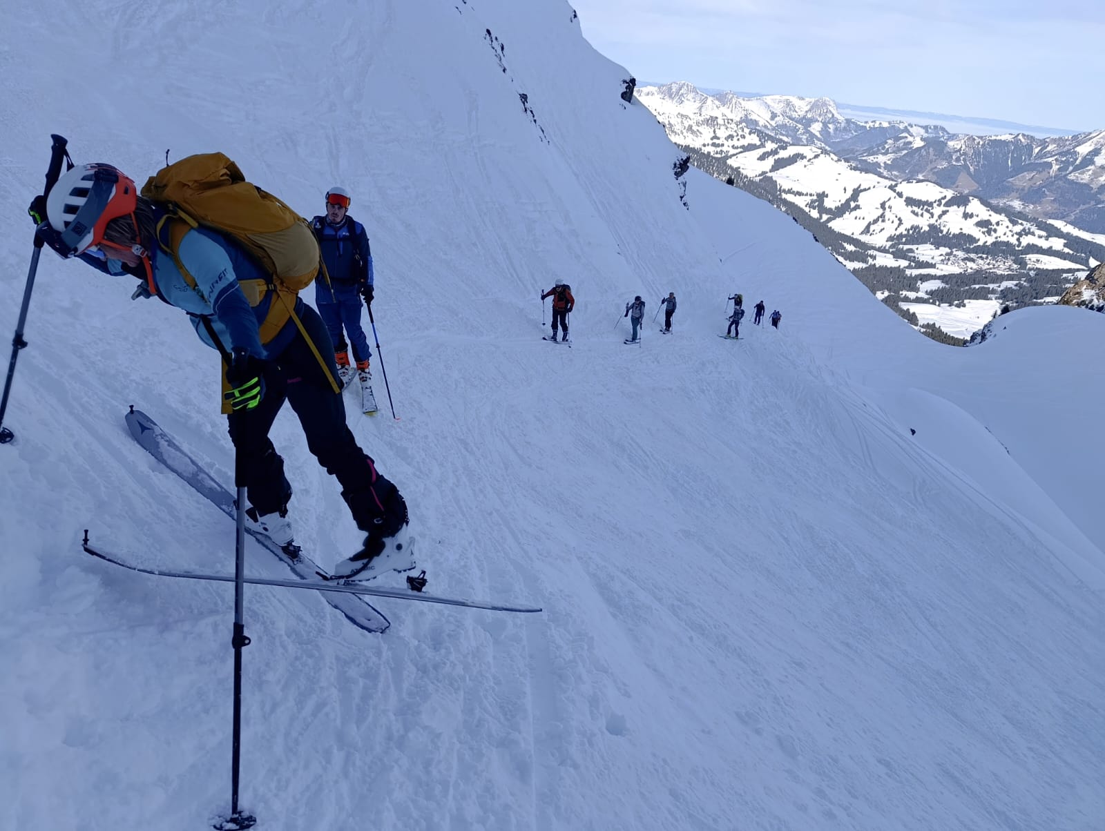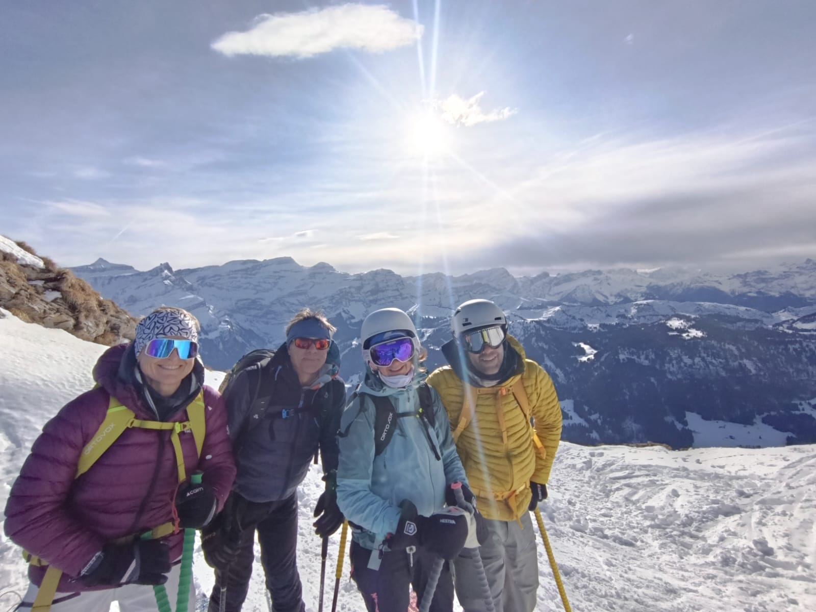 La classique ce dimanche depuis le col de Mosses avec un super groupe de 14 cafistes. Une très bonne neige froide et trafollée au dessus du lac, belle météo, groupe super sympa, crêpe au sommet, le top !