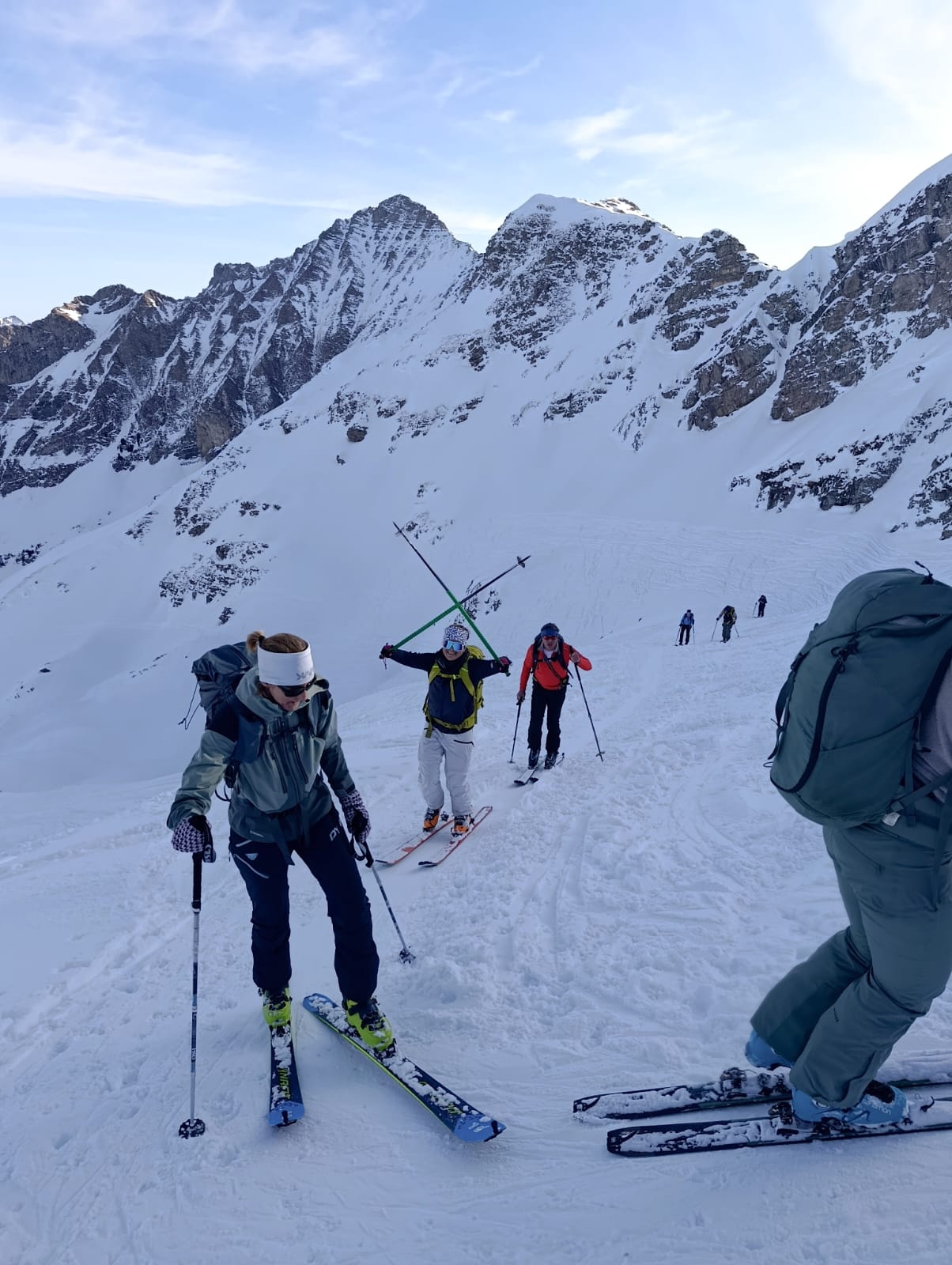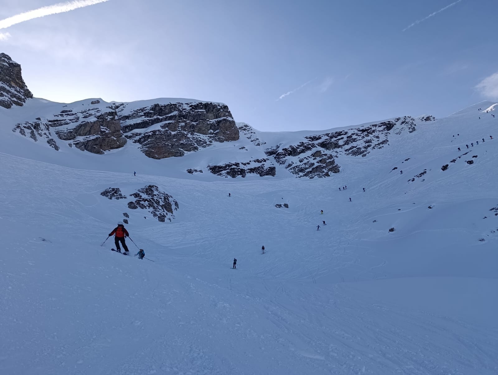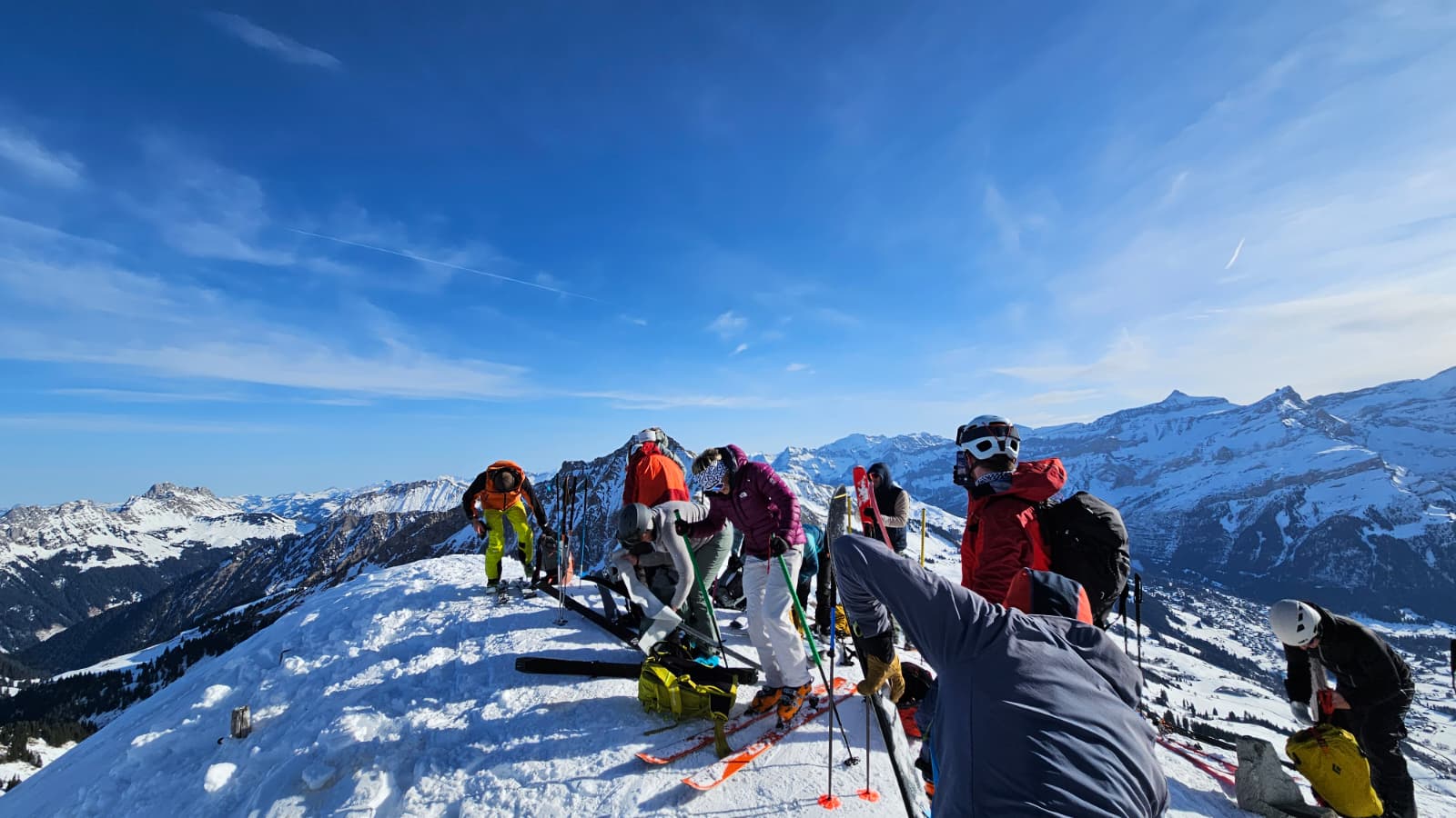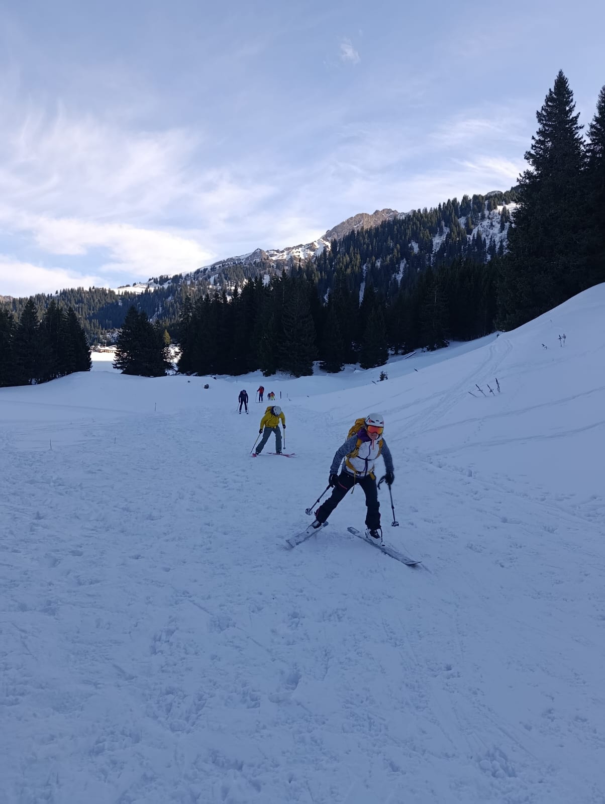 La classique ce dimanche depuis le col de Mosses avec un super groupe de 14 cafistes. Une très bonne neige froide et trafollée au dessus du lac, belle météo, groupe super sympa, crêpe au sommet, le top !